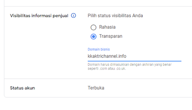 Pada Visibilitas Informasi Penjual, pilih Transparan.